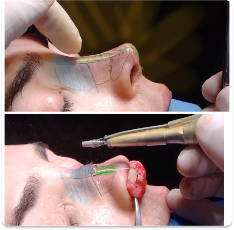 Domine as técnicas de Osteoplastia com brocas diamantadas no terço superior, Split Spreader Flap para reconstrução do terço médio e Suturas Ancoradas do Supratip no terço inferior.